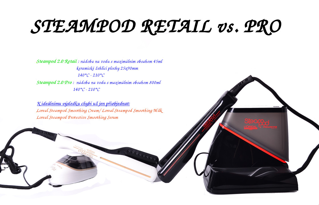 Žehlička na vlasy Steampod 2.0 Pre bola navrhnutá v spolupráci so značkou Rowenta. K produktu je priložená veľká nádobka na vodu a preto je ideálny pre profesionálov. Vďaka vstavanému generátora žehlička vytvára paru nepretržite počas celého procesu žehlenia.