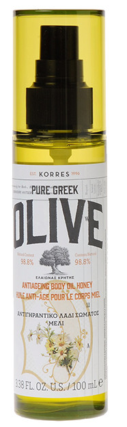 Suchý telový olej s obsahom extra panenského olivového oleja v jemnou medovou vôňou
