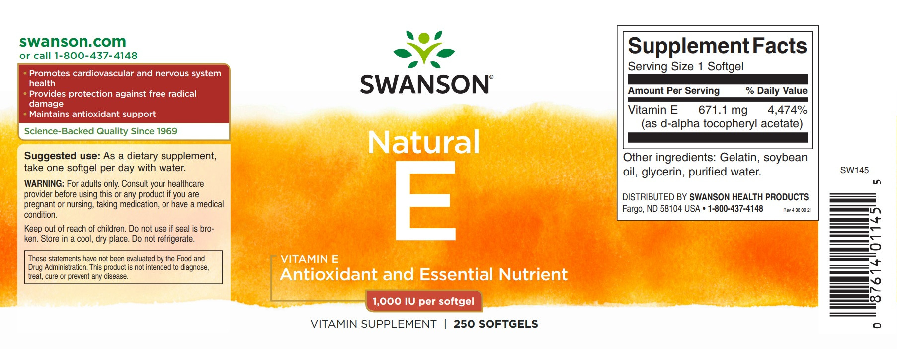 | Vitamín E (ako d-alfa tokoferylacetát) | 671,1 mg | 4,474 % |