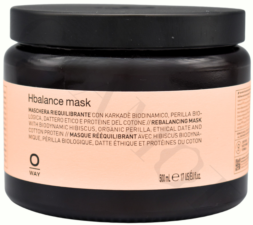 Oway Hbalance Mask je profesionálna maska navrhnutá na ošetrenie vlasov po farbení, odfarbovaní alebo iných technických zákrokoch. Pomáha obnoviť prirodzené pH vlasov a pokožky hlavy, uzatvára vlasovú kutikulu a zaisťuje dlhodobú stálosť farby. Vlasy zanecháva vyživené, hladké, lesklé a hebké na dotyk.