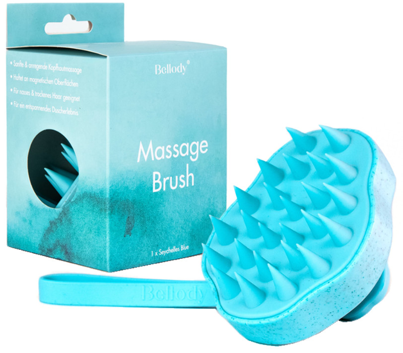 Masážna kefa na vlasy s mäkkými a flexibilnými štetinami ponúka unikátnu starostlivosť o pokožku hlavy. Jeho štetiny sú navrhnuté tak, aby masírovali šampón hlboko do vlasov, čo poskytuje výnimočnú starostlivosť o pokožku hlavy. V kefe je zabudovaný silný magnet, ktorý umožňuje pripevniť kefu k kovovým častiam v sprche alebo v kúpeľni. Táto masážna kefa na vlasy je vyrobená z materiálu obsahujúceho recyklát a dodávaná v štýlovo navrhnutých, 100% recyklovaných papierových obaloch.