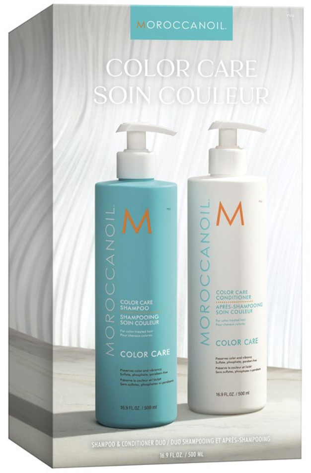 Táto darčeková pollitrová súprava z limitovanej edície je ideálna na starostlivosť o farbené vlasy. Šampón a kondicionér Moroccanoil Color Care s technológiou ArganID™ hĺbkovo hydratuje a regeneruje vlasy. Zároveň ich chráni pred škodlivými účinkami UV žiarenia a ďalších faktorov životného prostredia. Vďaka inovatívnemu zloženiu posilňujú vlasy a zabraňujú vyblednutiu farby. Výsledkom sú vlasy jemné, lesklé a s dlhotrvajúcou farbou.