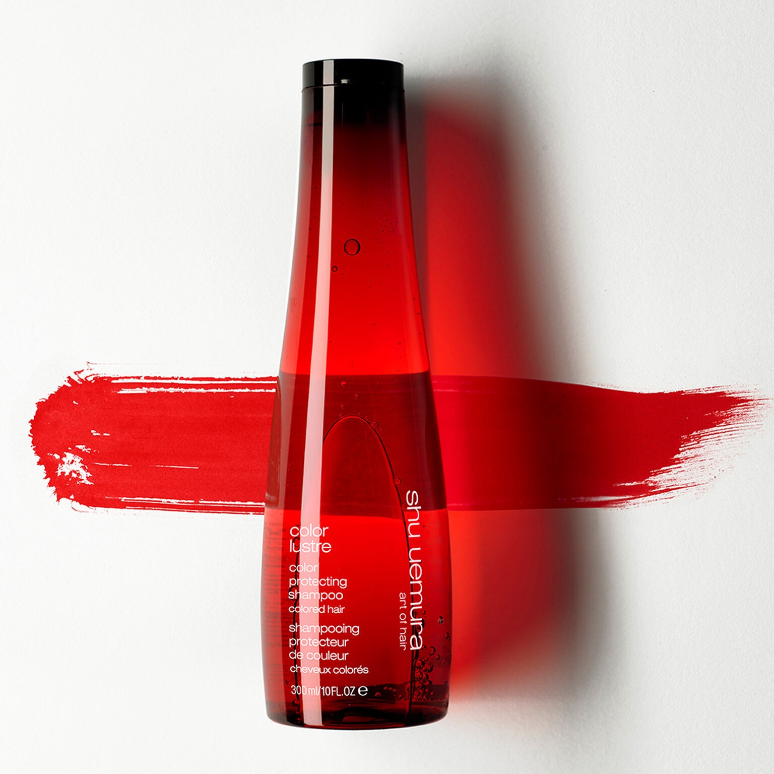 Naneste na mokré vlasy, vmasírujte a opláchnite. Následne použite kondicionér alebo masku ColorLustre a bezoplachový sprej shu uemura Color lustre Color Sealer Spray.