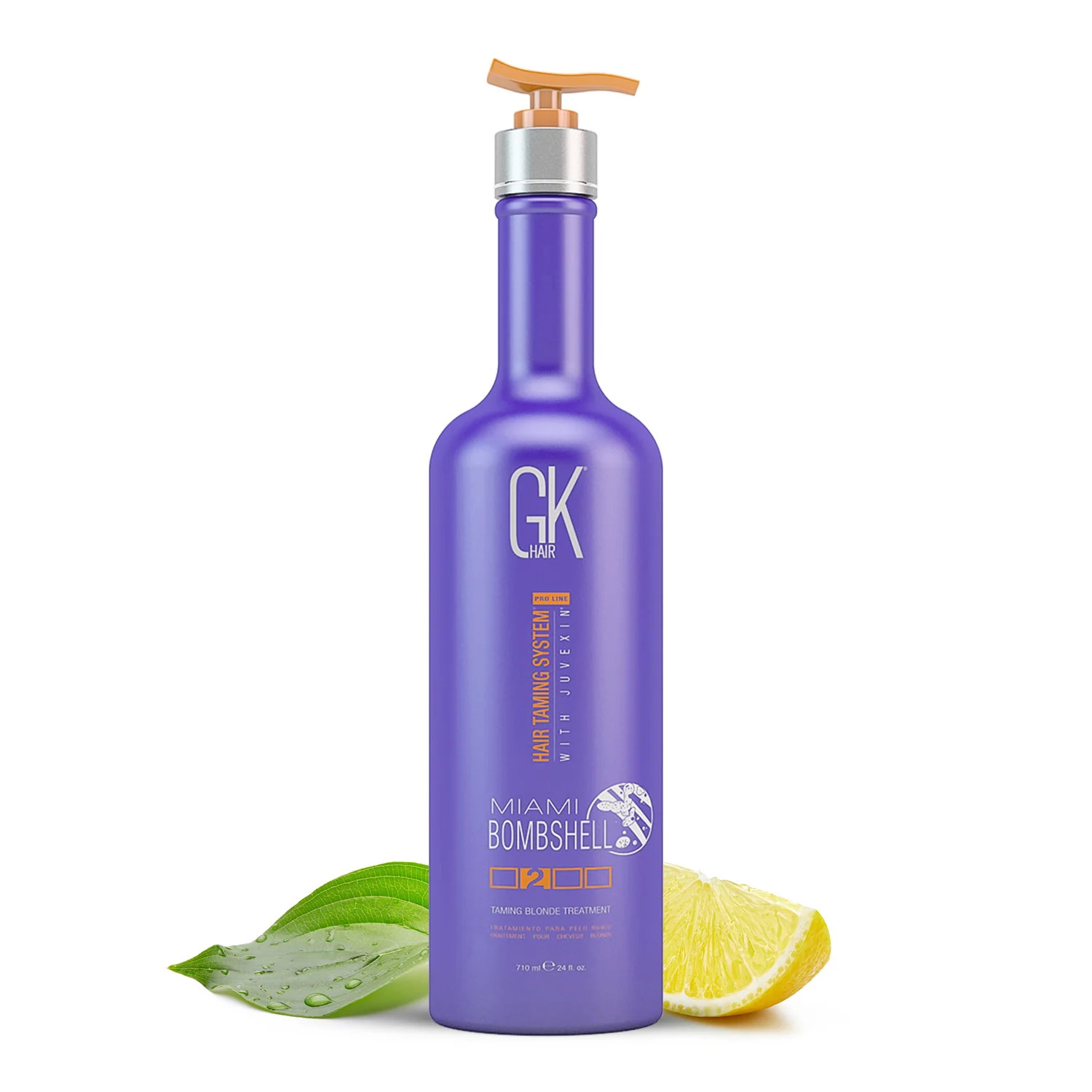 K Hair Miami Bombshell Treatment je revolučná uhladzujúca starostlivosť určená špeciálne pre blond vlasy. Táto vysoko účinná kúra nielen skrotí neposedné pramene, ale tiež obnoví a oživí blond farbu vlasov. Vďaka obsahu Juvexinu, keratínového proteínu s anti-aging účinkami, a prírodným olejom poskytuje vlasom hĺbkovú výživu, hydratáciu a ochranu pred budúcim poškodením. Neutralizuje nežiaduce žlté tóny a dodáva vlasom neodolateľný lesk.