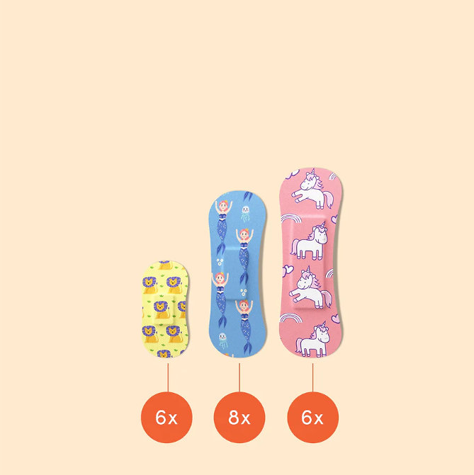 S náplasťami Kids Sensitive Fantasy sa aj tá najmenšia odrenina stane dobrodružstvom. Kúzelné motívy jednorožcov, morských panien a levov rozžiaria tvár každej malej princeznej a premenia obyčajnú náplasť na módny doplnok.