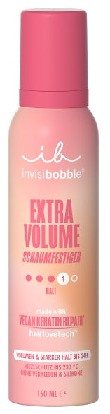 Túžite po účese, ktorý bude pôsobiť bohato, nadýchane a vydrží celý deň? Invisibobble Extra Volume Mousse je tu práve pre vás. Táto ľahká, ale účinná pena dodáva vlasom maximálny objem, chráni ich pred teplom až do 230 ° C a zároveň ich vyživuje vďaka vegánskemu keratínovému komplexu. Ideálne pre všetky typy vlasov, či už chcete vytvoriť prirodzene nadýchaný účes alebo výrazný styling plný textúry.