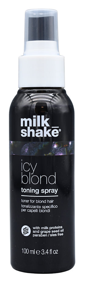 Rýchla záchrana pre dokonale studenú blond. milk_shake® Icy Blond Toning Spray je bezoplachový tónovací sprej určený pre veľmi svetlé a platinové blond vlasy, ktorý pomáha neutralizovať nežiaduce žlté a teplé tóny. Vďaka špeciálnym čiernym pigmentom dodáva vlasom jemné popolavé nuansy, zatiaľ čo ošetrujúce zložky vlasy hydratujú, uhladzujú a zlepšujú ich ovládateľnosť. Ideálne riešenie medzi návštevami salónu aj na každodenné osvieženie farby.