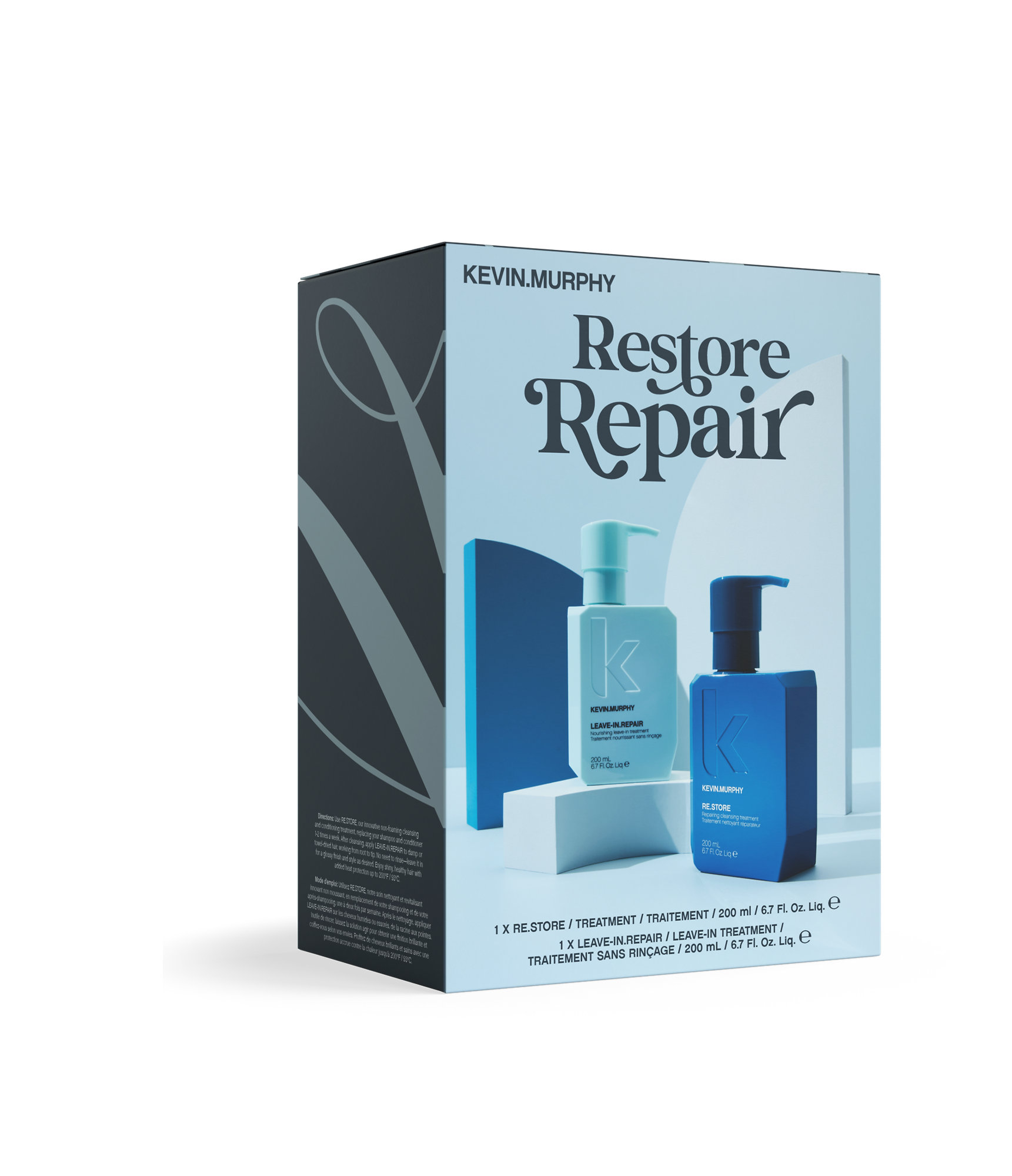 Vaše vlasy volajú po SOS? Doprajte im hĺbkovú regeneráciu s Kevin Murphy RE.STORE REPAIR! Táto sada je určená pre suché, poškodené a chemicky ošetrené vlasy, ktoré potrebujú intenzívnu starostlivosť. Obsahuje dva produkty: RE.STORE, čistiacu a regeneračnú kúru, a LEAVE-IN.REPAIR, bezoplachový regeneračný sprej. Spoločne tieto produkty hĺbkovo vyživujú, opravujú a posilňujú vlasové vlákno, navracia vlasom lesk a hebkosť a chráni ich pred ďalším poškodením.