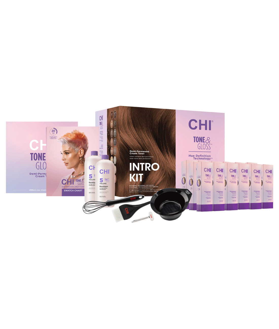 CHI Color Tone & Gloss Try Me Kit je profesionálna sada demi-permanentných tónovacích krémov, ktorá slúži na jemné tónovanie, neutralizáciu nežiaducich odleskov a zvýraznenie farby vlasov. Vlasy po aplikácii získavajú krásny lesk, hladkosť a prirodzene zjednotený tón bez toho, aby boli zbytočne zaťažované alebo poškodzované.