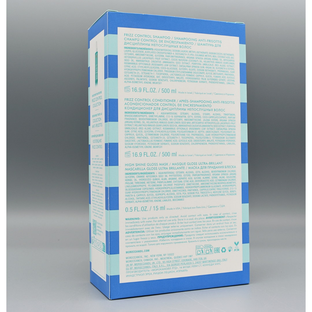 Privítaj hladšie, lesklejšie a lepšie ovládateľné vlasy bez krepovatenia a statickej elektriny s touto profesionálnou duálnou starostlivosťou od Moroccanoil. Táto výhodná sada kombinuje dve základné produkty z radu Frizz Control, ktoré spoločne hĺbkovo čistia, vyživujú a chránia vlasy pred vlhkosťou a nepoddajným krepatením – ideálne riešenie pre všetky typy vlasov náchylné na krepatenie.