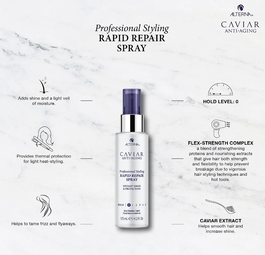 Výťažok z kaviáru - pôsobí proti starnutiu vlasov tým, že obnovuje vlhkosť, pružnosť a lesk